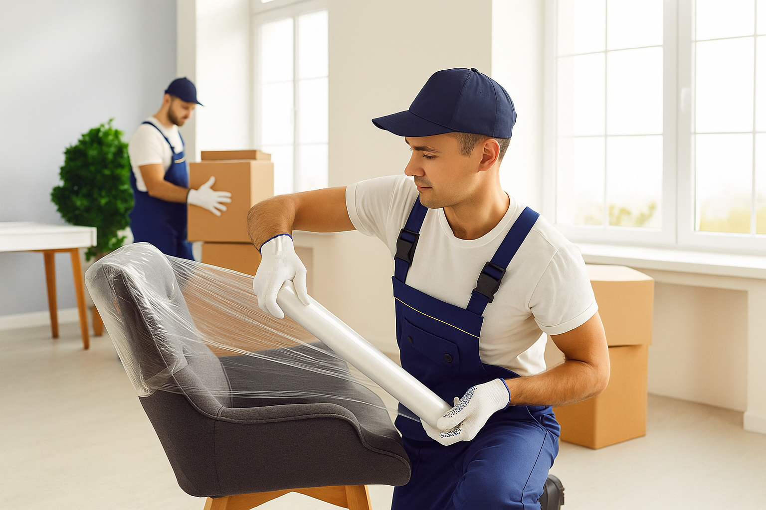 Proteggiamo ogni componente con coperte su misura, pluriball e pellicole trasparenti.
